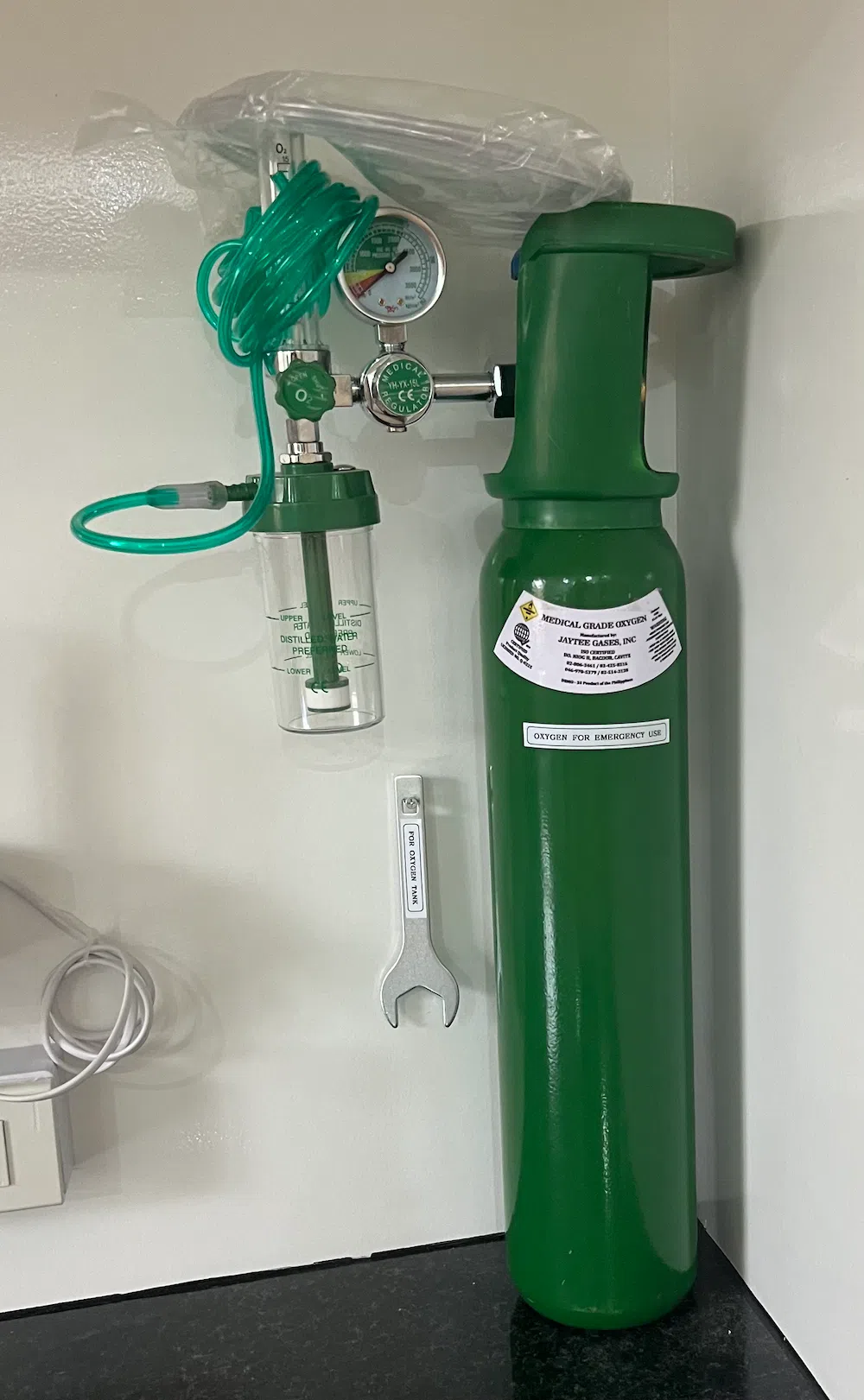 - An emergency oxygen tank fully filled and ready for use.